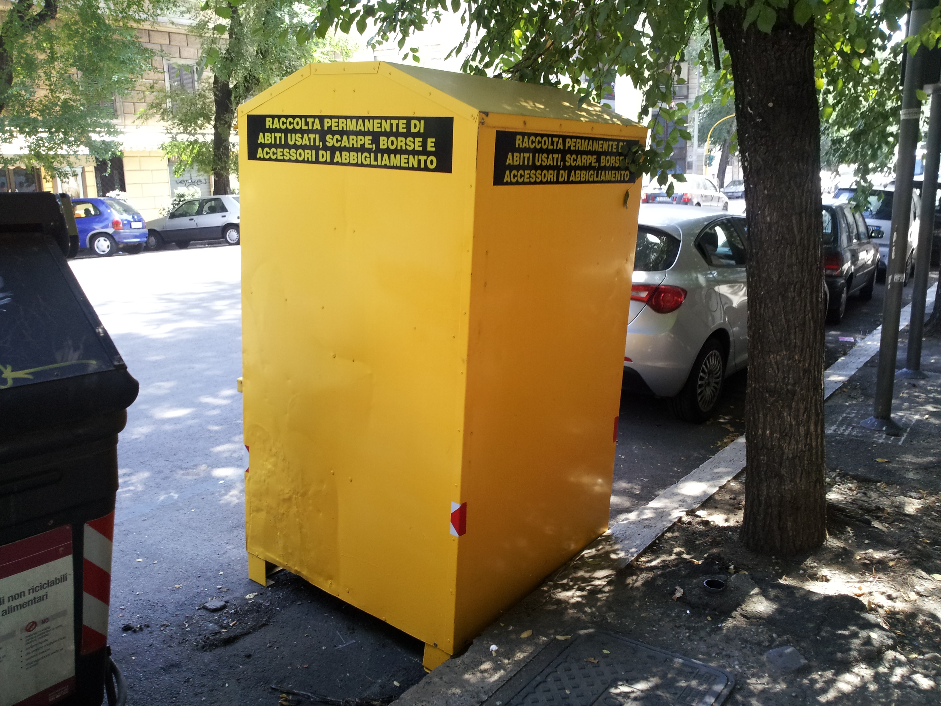 Domenica 4 agosto è stato cambiato il cassonetto giallo a viale Manzoni dato che il vecchio era diventato indecente per le scritte, la carta attaccata ricordo di innumerevoli manifesti abusivi ed era anche ammaccato in diverse parti (vedi). Vediamo questo quanti giorni dura così pulito.