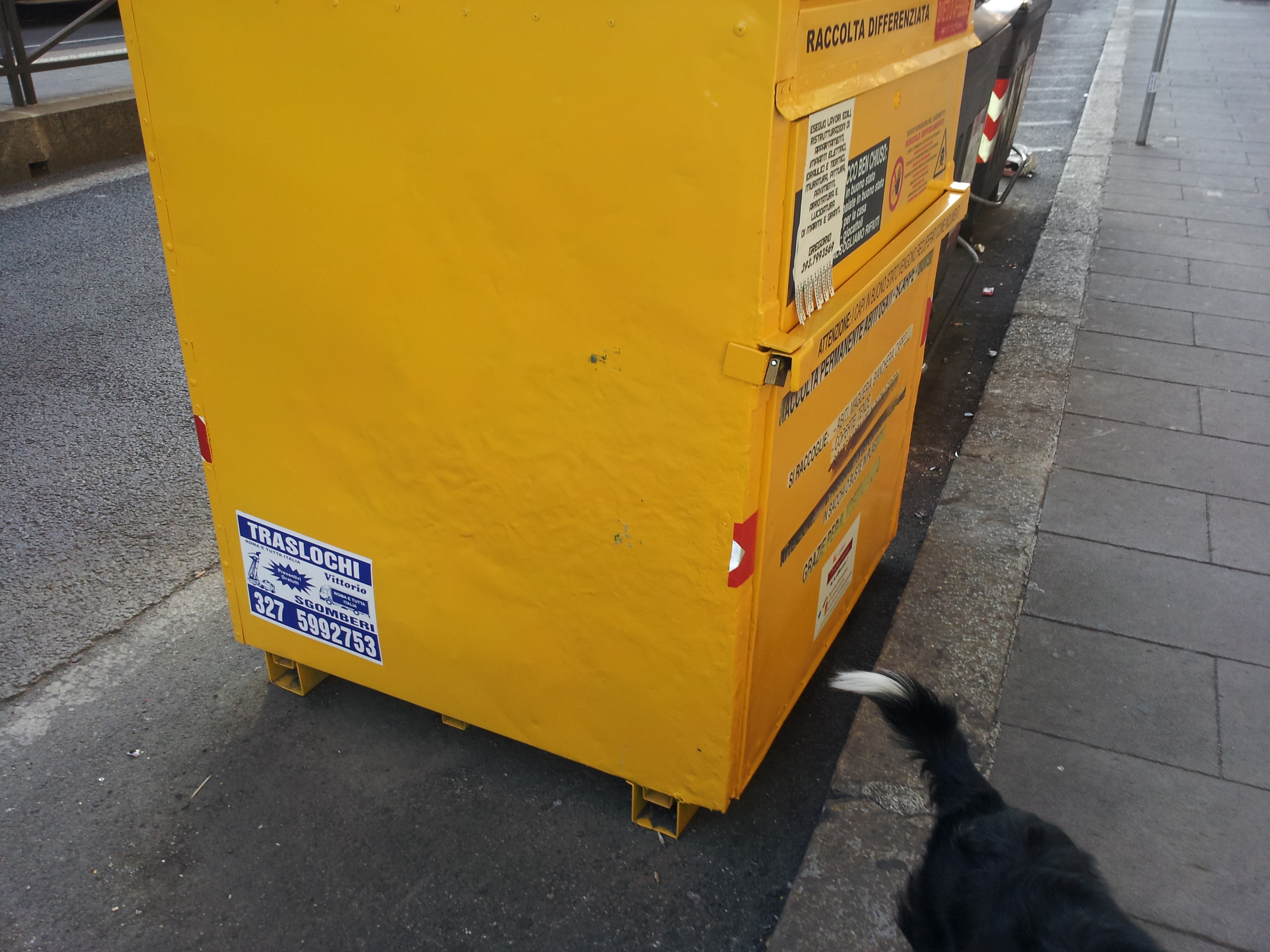 A via Principe Eugenio è stato ripulito qualche giorno dopo quello di viale Manzoni il cassonetto giallo che anche qui era ridotto in uno stato pietoso. A differenza dell’altro non è stato subito preso di mira dagli imbrattatori ma dai vari furbetti che appongono i loro adesivi pubblicizzando abusivamente traslochi, pulitura cantine e lavoretti vari. A diffrerenza degli imbrattatori però questi signori hanno un recapito (anche se c’è quasi sempre solo un numero di cellulare) e basterebbe questo per risalire agli autori e multarli in maniera tale che ci penserebbero bene a continuare ad apporre adesivi su qualsiasi superficie possibile (dai cassonetti alle serrande dai muri agli sportelli di armadi Telecom e Acea)