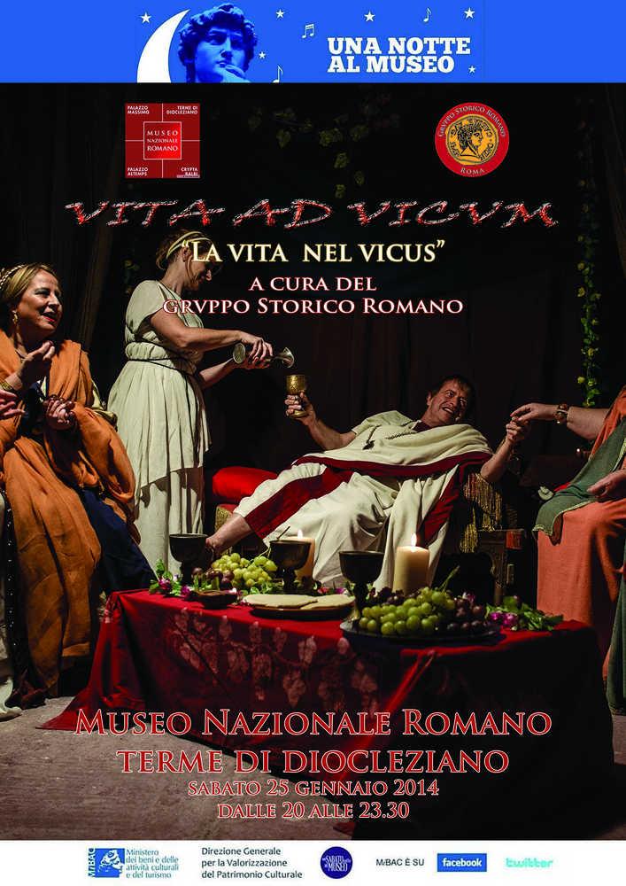 In particolare al Museo Museo Nazionale Romano alle Terme di Diocleziano, in occasione dell’evento “Una notte al Museo” avrà luogo “Vita ad vicum” Rievocazione storica a cura del Gruppo Storico Romano.