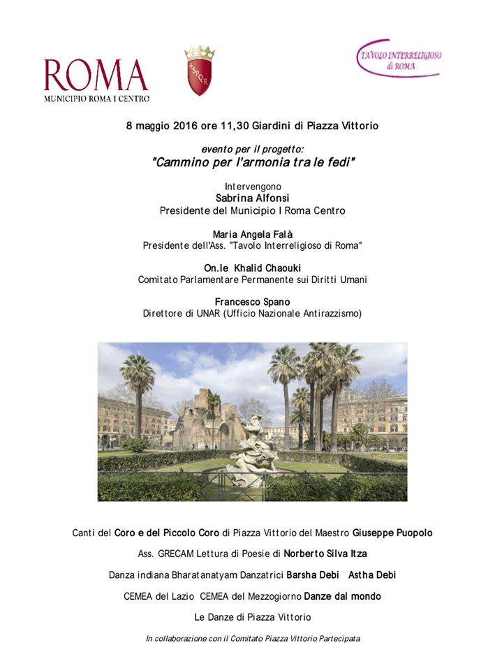 8 maggio 2016 “Cammino per l’armonia delle fedi” a Piazza Vittorio