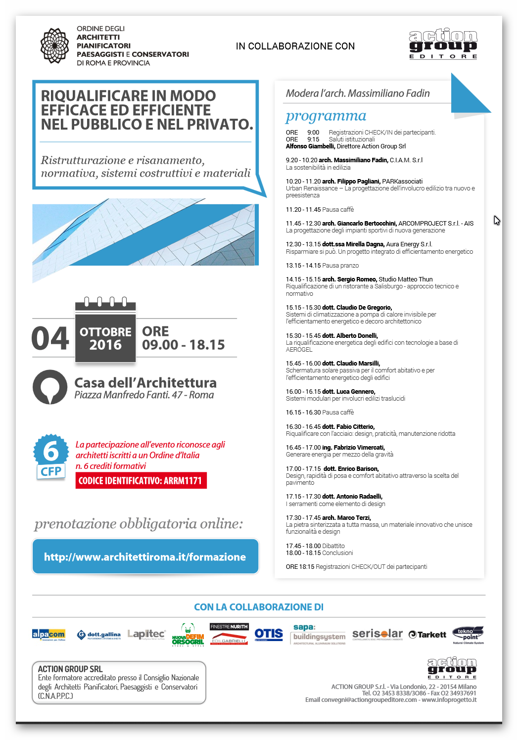 4 Ottobre 2016 “Riqualificare in modo efficace ed efficiente nel pubblico e nel privato” presso la Casa dell’Architettura