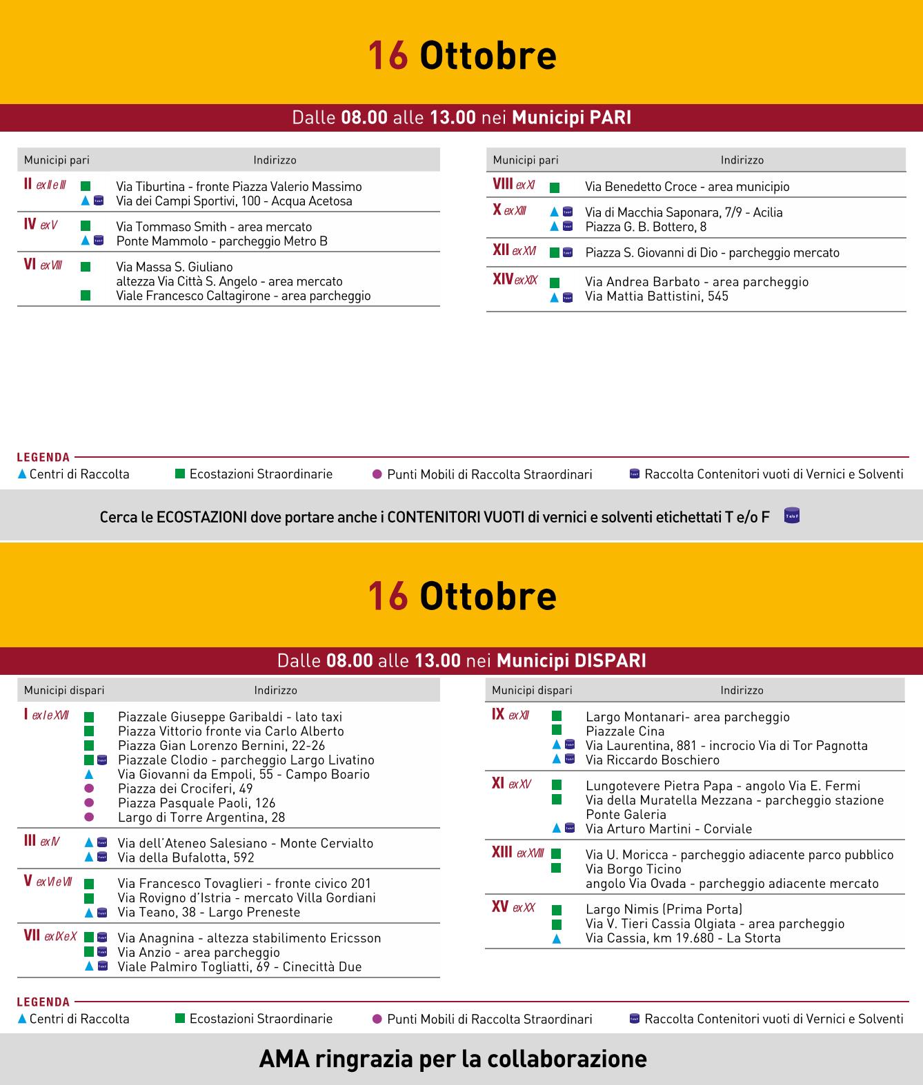 Raccolte domenicali rifiuti ingombranti. La seconda domenica del mese in alternanza tra municipi pari e dispari in alcune zone si possono gettare rifiuti ingombranti a titolo gratuito. Nel nostro rione la raccolta avviene a Piazza Vittorio angolo via Buonarroti o incrocio con via Carlo Alberto dalle 8,00 alle 13,00. Ricordiamo che domenica 16 ottobre, dalle ore 8 alle 13, saranno presenti i mezzi dell’AMA a Piazza Vittorio.