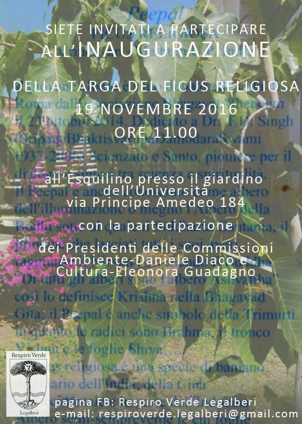 Il giovane albero è stato donato alla città di Roma dall’Associazione Bhagavat Atheneum il 23 ottobre 2014.