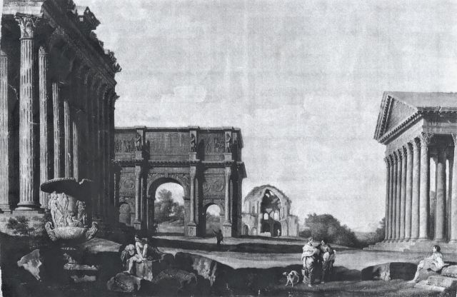Un altro autore ha immaginato un ambiente simile ma se possibile ancor più fantasioso con statue , obelischi e colonne commemorative.