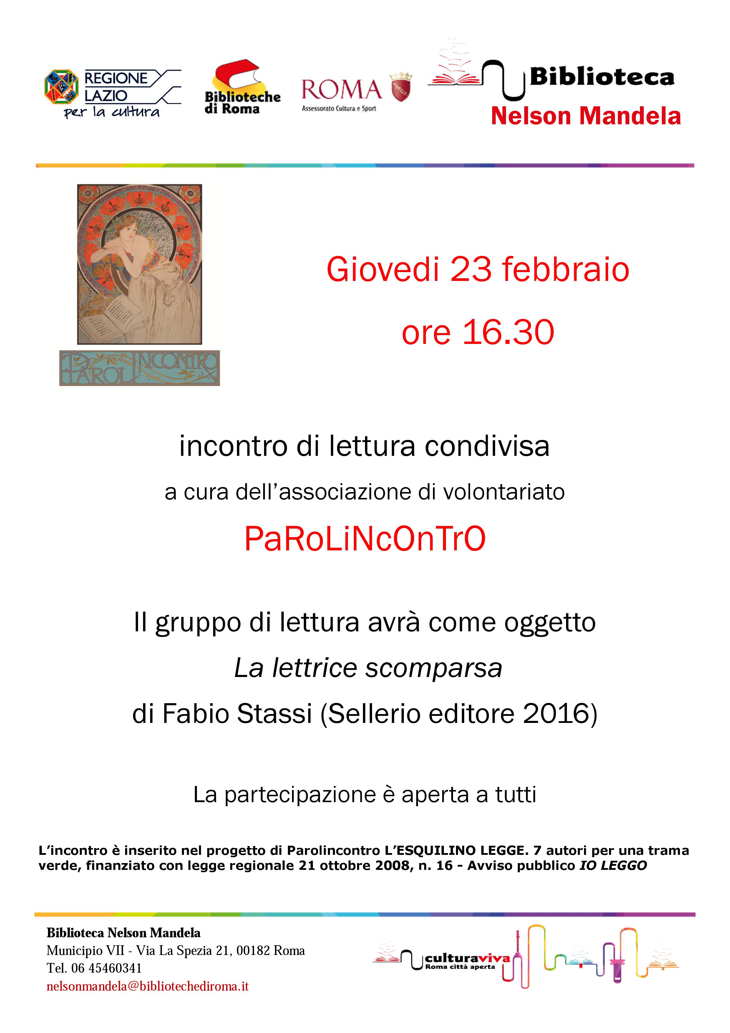 23 febbraio 2017 lettura condivisa del libro “La lettrice scomparsa” presso la libreria N. Mandela