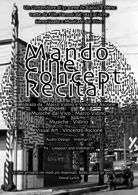 Un progetto da vedere e da sentire, Mando Cine Concept Recital è un gioco che può fare lo spettatore al cospetto della pellicola (creata dal VJ Enzo Ascione e il Musicista Compositore Marco Vidino) sfidando la propria conoscenza cinematografica.