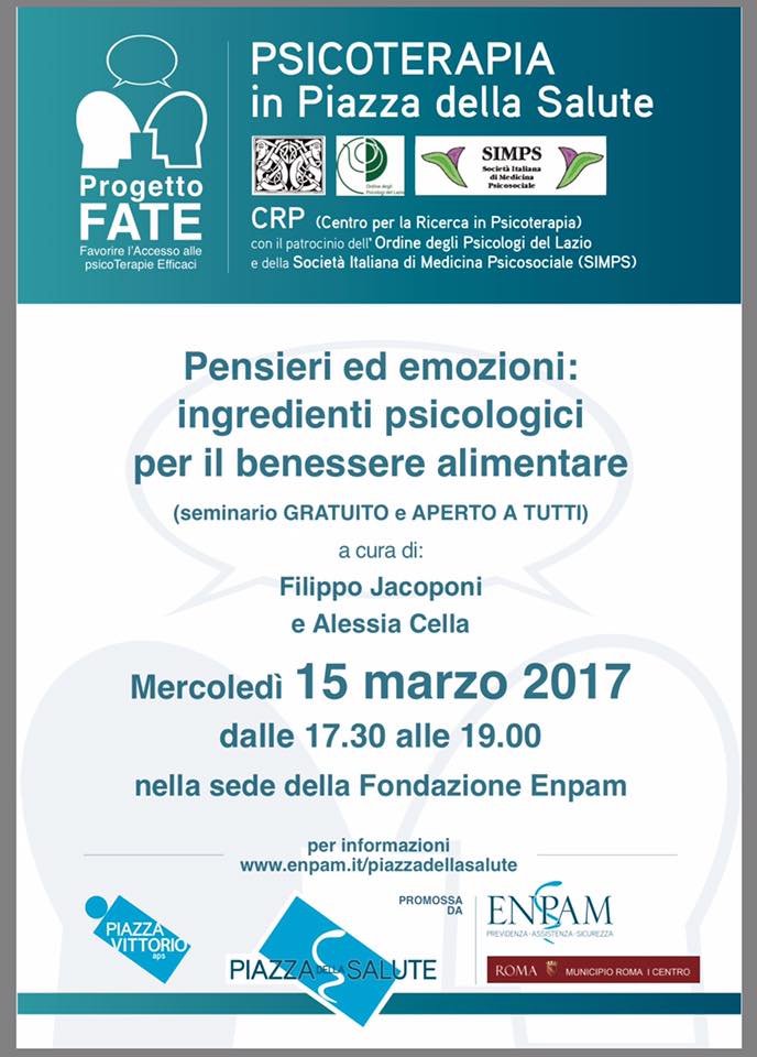 Appuntamento mercoledì 15 marzo all’Enpam per parlare di ‘Ingredienti psicologici per il benessere alimentare’.