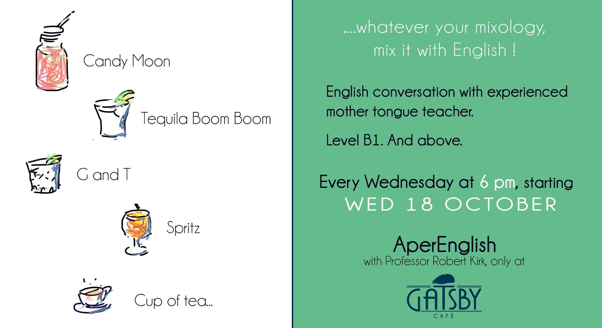 Da l 18 ottobre, a quest’ora sarà possibile fare aperitivo al Gatsby Cafe’ e migliorare il proprio inglese. Con Robert Kirk.