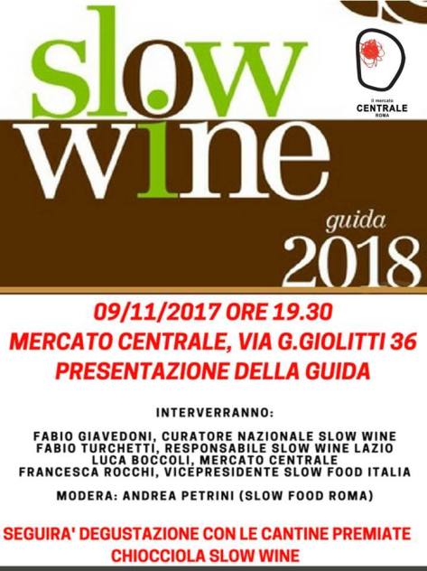 9 novembre 2017 “Slow Wine 2018” al Mercato Centrale Roma