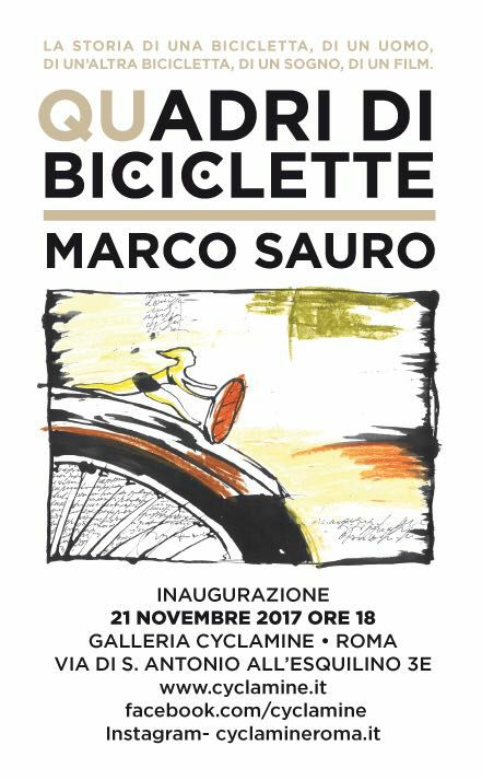 Martedì 21 novembre dalle 19.00, INAUGURAZIONE della mostra QUADRI DI BICICLETTE di Marco Sauro a Cyclamine Arte Roma. Venite a scoprirla!