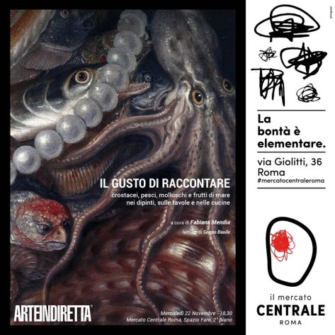 ArteInDiretta presenta mercoledì 22 novembre alle ore 18,30, presso lo Spazio FARE del Mercato Centrale Roma, IL GUSTO DI RACCONTARE – crostacei, pesci, molluschi e frutti di mare nei dipinti, sulle tavole e nelle cucine, progetto a cura di Fabiana Mendia, con letture di Sergio Basile (ingresso libero). L’appuntamento, promosso insieme al Mercato Centrale Roma, è il primo di un ciclo di incontri che intende approfondire i rapporti tra Arte e Cibo attraverso la trattazione parallela di letture di dipinti (nature morte, scene di genere, di mercati, di banchetti, di cucine) e approfondimenti di testi gastronomici, dall’antico al contemporaneo.
