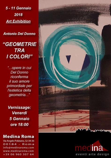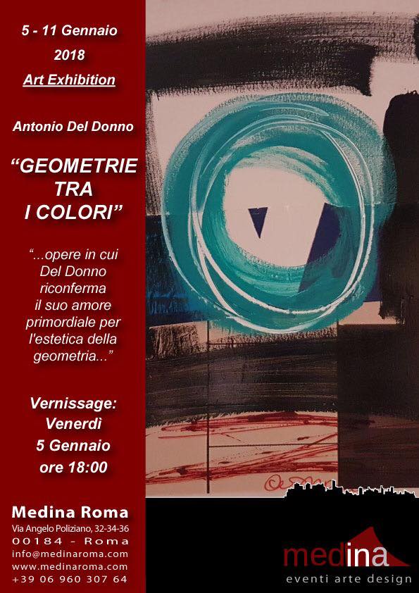 Dal 5 all’11 Gennaio in mostra negli Spazi @Medina Roma le opere di Antonio Del Donno. Una personale dedicata all’ artista dal titolo “Geometrie tra colori“, una selezione di opere in cui Del Donno, riconferma il suo amore primordiale per l’estetica della geometria che lo segue dagli inizi della sua carriera.