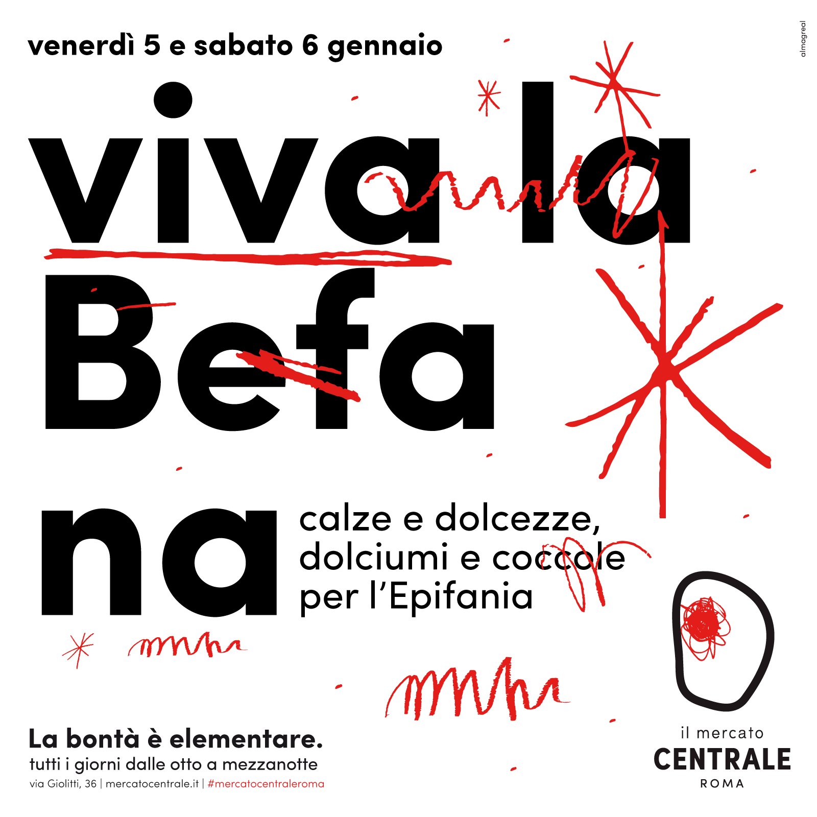 Per tutto il weekend, venerdì 5 e sabato 6 gennaio, nella nostra piazza ci sarà un temporary dedicato alla Befana vicino la bottega del cioccolato.