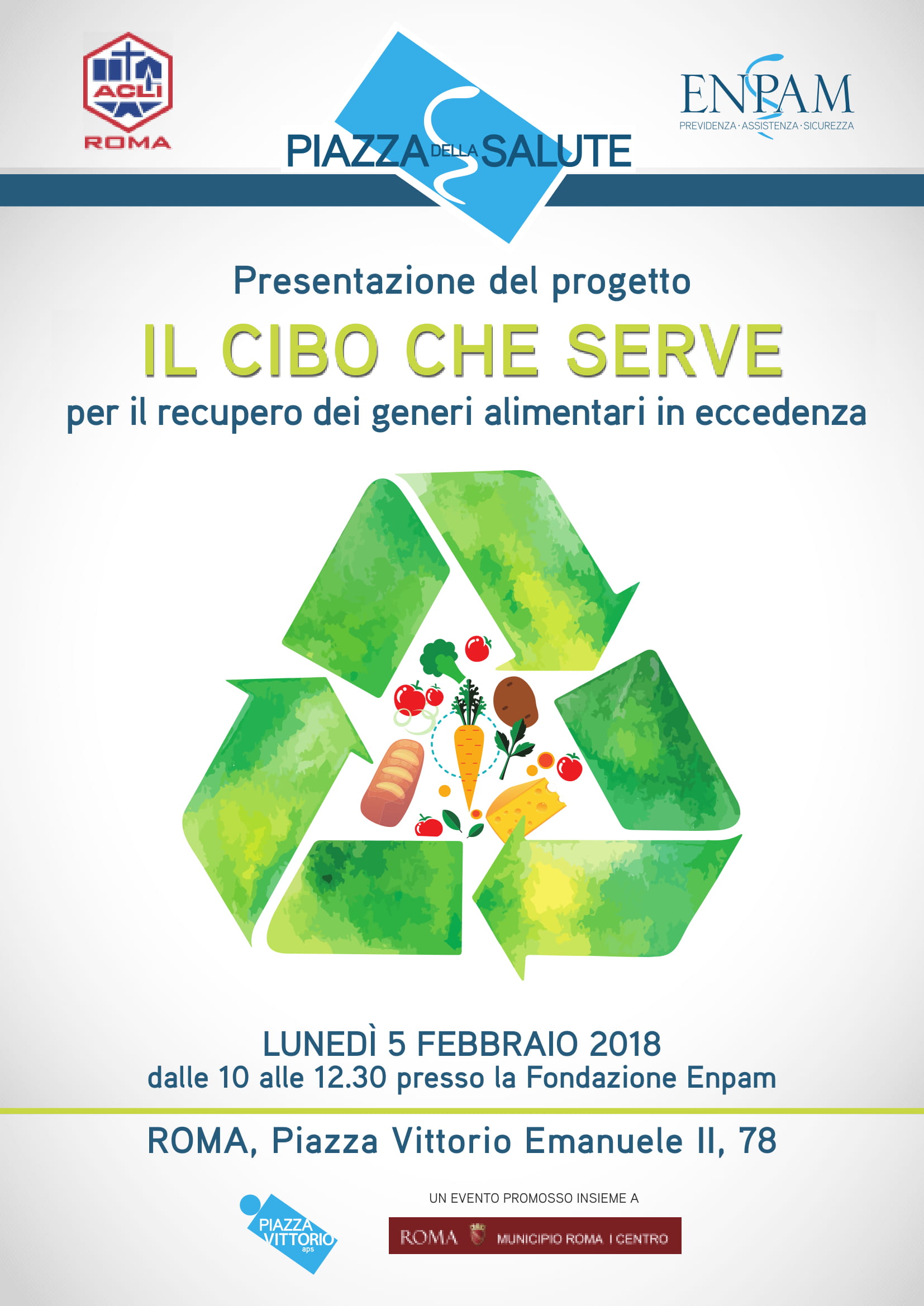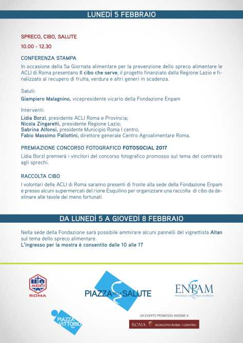 Lunedì 5 febbraio dalle 10 alle 12.30 nella sede dell’Enpam ci sarà una conferenza stampa per presentare il progetto ‘Il cibo che serve’.