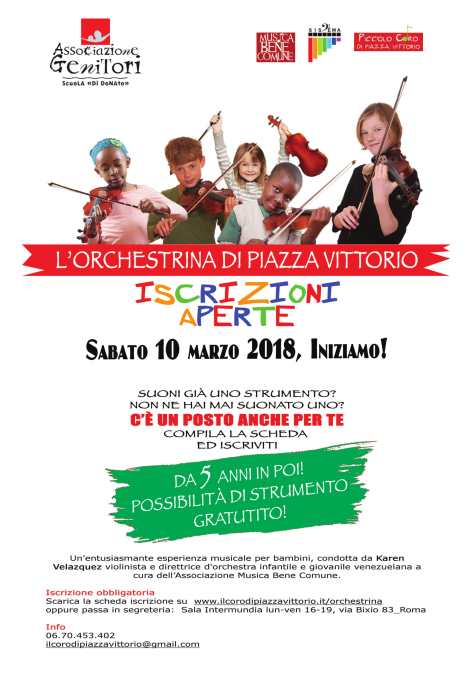 Riaperte le iscrizioni per l’Orchestrina di Piazza Vittorio fino al 30 marzo 2018