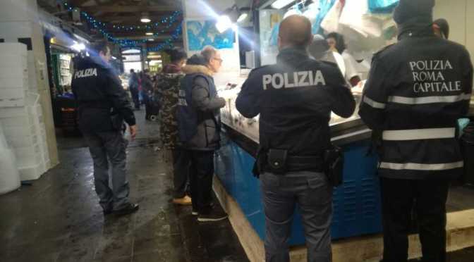 Controlli a tappeto al mercato Esquilino, eseguiti nella giornata di ieri,  da parte degli agenti della Polizia Locale, I Gruppo “ex Trevi”, diretti dal Comandante Maurizio Maggi, unitamente a personale della Polizia di Stato, Commissariato Esquilino e della Capitaneria di Porto di Roma – Fiumicino.