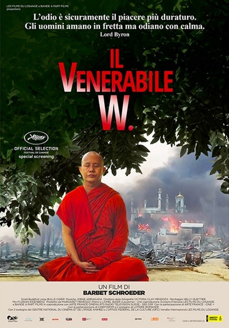 IL VENERABILE W. svela la figura e il percorso di Wirathu, maestro buddhista birmano che predica “la protezione della razza e della religione”, esortando al massacro del popolo musulmano dei Rohingya. Il regista candidato al Premio Oscar Barbet Schroeder (Barfly, Il mistero Vol Bulow) si chiede come una filosofia così pacifista e tollerante come il Buddhismo, da lui stesso praticata, possa provocare tali degenerazioni nell’animo umano. Attraverso un’intervista esclusiva con Wirathu, Schroeder ci porta dolorosamente a conoscenza di una situazione pressoché sconosciuta in Italia, ma che riflette in modo esponenziale i delicati equilibri internazionali e si ripercuote su ogni Paese, per quanto geograficamente lontano.
