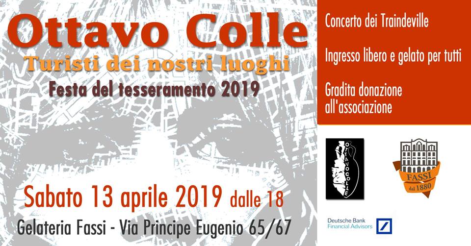 Anche per quest’anno la tradizionale festa del tesseramento della nosta associazione, che entra nel suo quinto anno di attività, si terrà nella storica gelateria di Andrea Fassi all’Esquilino. Ad accompagnare la degustazione del gelato “Sampietrino”, offerto dall’associazione, la musica del duo dei Traindeville protagonista di tante iniziative comuni. Sponsor dell’iniziativa, sarà ancora una volta la Deutsche Bank con la quale siamo convenzionati, nella figura del consulente finanziario Andrea Sordini. Chi lo vorrà, portrà fare una donazione: