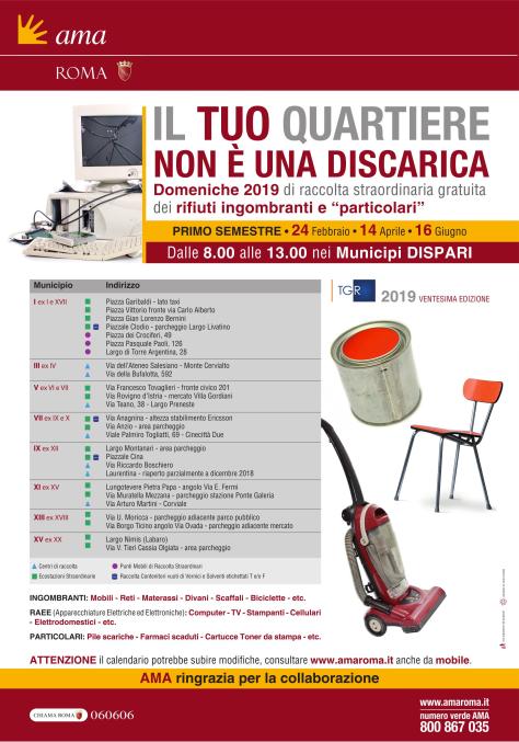 Ama provvederà a differenziare secondo la categoria merceologica (legno, ferro, plastica, altri metalli, ecc.) i rifiuti riciclabili raccolti e ad avviarli alle rispettive filiere di recupero. Si ricorda inoltre che l’azienda mette quotidianamente a disposizione dei cittadini altri due canali per disfarsi gratuitamente dei rifiuti ingombranti, elettrici ed elettronici, che non devono essere assolutamente conferiti nei cassonetti stradali: i 14 centri di raccolta aziendali aperti tutti i giorni e, dallo scorso 1 dicembre, il servizio di ritiro a domicilio al piano strada per i materiali fino a 2 metri cubi di volume. Il servizio può essere prenotato tramite il ChiamaRoma 060606 oppure compilando l’apposito modulo di richiesta nella sezione Servizi on-line