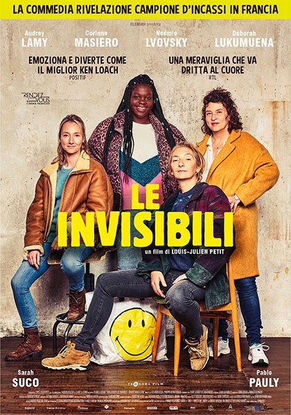 Campione d’incassi in Francia con oltre 10 milioni di euro al box office, LE INVISIBILI è un’imperdibile commedia degna del miglior Ken Loach, capace di unire impegno e divertimento per affrontare un tema quanto mai attuale. Protagoniste del film sono quattro assistenti sociali dell’Envol, un centro diurno che fornisce assistenza alle donne senza fissa dimora. Quando il Comune decide di chiuderlo, si lanciano in una missione impossibile: dedicare gli ultimi mesi a trovare un lavoro al variopinto gruppo delle loro assistite, abituare a vivere in strada. Violando ogni regola e incappando in una serie di equivoci, riusciranno infine a dimostrare che la solidarietà al femminile può fare miracoli.