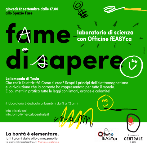 Fame di sapere è un ciclo di laboratori per bambini, nato in collaborazione con Officine fEASYca, per conoscere e scoprire le magie della scienza.