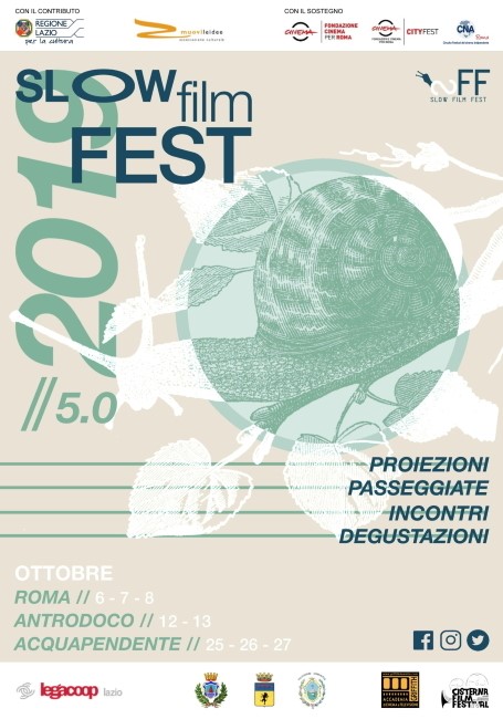 Lo Slow Film Fest, con il contributo della Regione Lazio, patrocinato da CNA Roma e Lazio, CNA Cinema e Audiovisivo Roma, da LegaCoop e dal circuito Città Slow International, è il primo festival di cinema dedicato a una visione cinematografica in termini slow. Slow come moto che rallenta il suo percorso per soffermarsi sull’identità, sul patrimonio, sulla memoria, sull’ambiente, le diversità, sui diritti umani, sulla sostenibilità e su tanti altri argomenti correlati che sono trasversali e base di confronto e discussione, come ad esempio quello dell’innovazione.