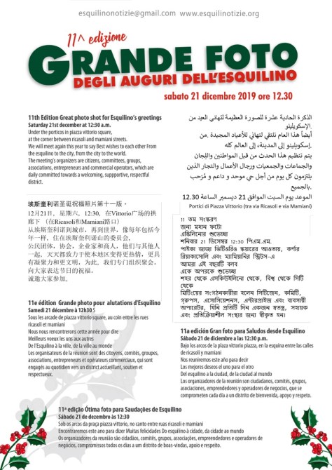 21 dicembre 2019 11° Edizione della Grande foto degli auguri dell’Esquilino a Piazza Vittorio