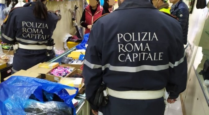 A seguito dei quotidiani controlli anti-abusivismo commerciale svolti dalla Polizia Locale della Capitale, potenziati ulteriormente in queste giornate in cui il fenomeno diventa più intenso, le pattuglie del I Gruppo Trevi hanno avviato indagini mirate per risalire agli esercizi che rifornivano gli ambulanti dei prodotti, in molti casi pericolosi oltrechè non a norma, venduti illegalmente in molte zone del Centro Storico.Tutto ha avuto inizio nel corso di alcuni interventi a contrasto del commercio ambulante abusivo, nelle vie e piazze maggiormente interessate da questi illeciti, dove sono stati più volte posti sotto sequestro oggetti come puntatori laser e giocattoli non a norma e quindi con potenziali rischi per la salute degli avventori, a partire dai bambini. L’attività di monitoraggio avviata dagli agenti, diretti da Dott. Maurizio Maggi, ha permesso di rintracciare le basi della distribuzione illegale nella zona dell’Esquilino.Qui sono stati individuati alcuni esercizi che provvedevano non solo al rifornimento degli irregolari ma anche alla vendita diretta della merce ad ignari acquirenti. La maggior parte dei prodotti sono risultati privi delle marcature CE e di altre prescrizioni obbligatorie relativamente alla loro sicurezza. In totale sono stati sequestrati circa 17mila articoli, tra i quali dispositivi elettronici, giocattoli, occhiali da sole, bigiotteria.