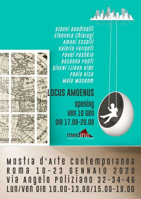 LOCUS AMOENUS – I luoghi dell’anima, presso gli Spazi Espositivi Medina Roma dal 10 Gennaio al 23 Gennaio 2020. Una mostra collettiva che unisce diversi medium e che punta a mettere in relazione diversi luoghi, reali o meno, fisici o no, che appartengono a ciascun artista. L‘exhibition è a cura dello team Medina Roma.