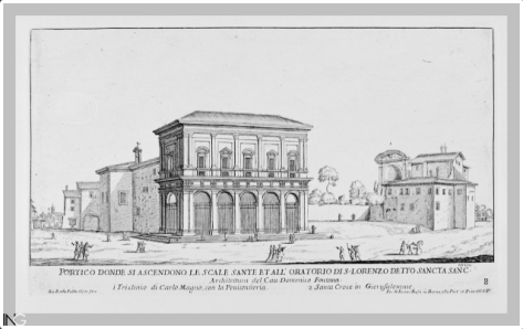 “Portico donde si ascendono le scale sante et all’Oratorio di S. Lorenzo detto Sancta Sanc.torum. Architettura del cav. Domenico Fontana”