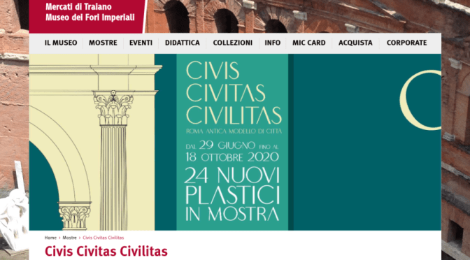 1). ROMA – Civis Civitas Civilitas – Roma antica modello di città; Mercati di Traiano Museo dei Fori Imperiali (07/2020 – 10/2020).