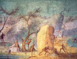 Uno dei pannelli più vivaci è quello dell’Assalto dei Lestrigoni, con figurette disseminate in un vasto paesaggio, comprendente una visuale aerea e riempito di rocce e alberi, con pastori ed animali.