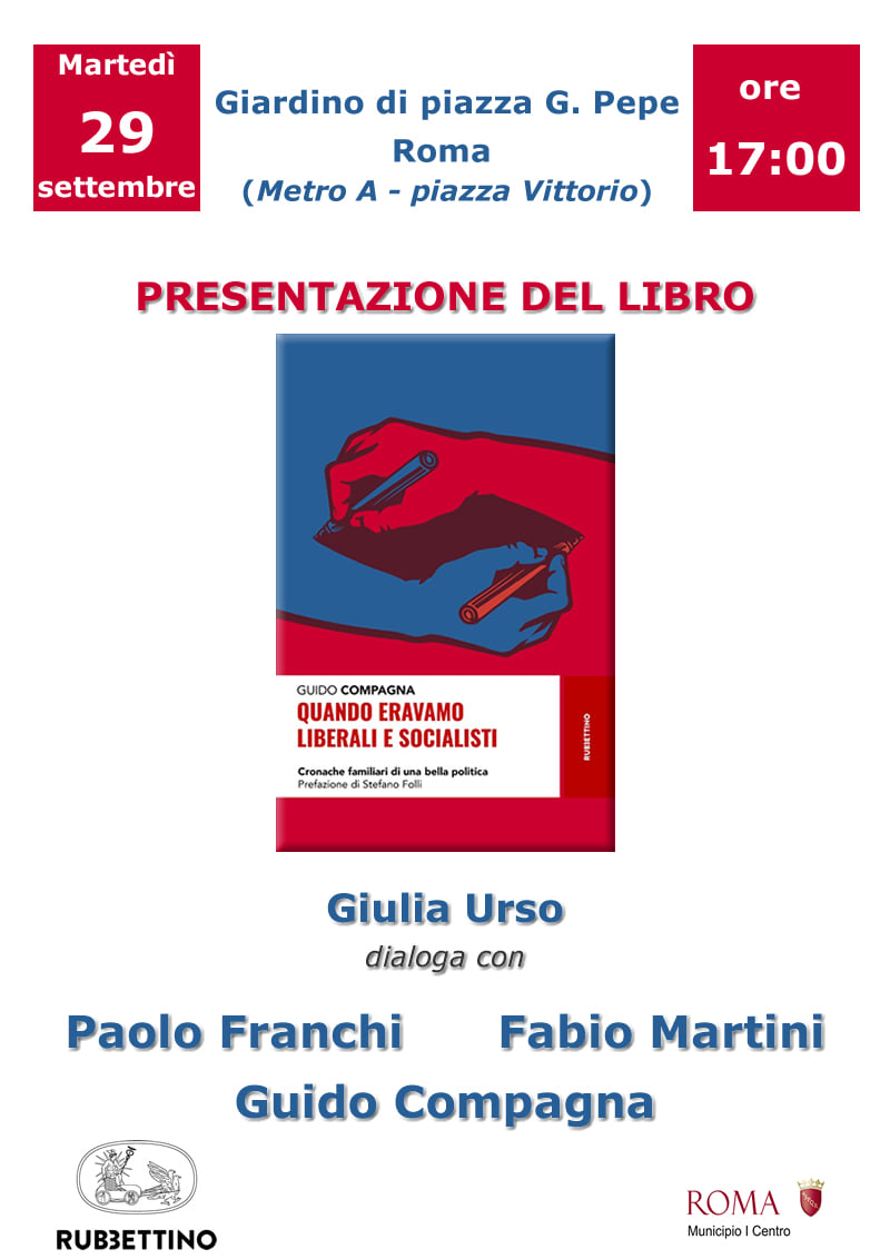 Martedì 29 settembre, alle ore 17, si terrà la presentazione del libro “Quando eravamo liberali e socialisti” di Guido Compagna.