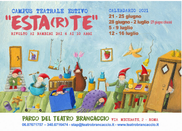 Un Centro Estivo Teatrale dedicato ai bambini dai 6 ai 10 anni nella splendida cornice del Parco del Teatro Brancaccio. Un meraviglioso casale in mezzo al verde con tre sale accoglienti e uno spazio all’aperto nel cuore del quartiere Esquilino, accoglieranno le attività divertenti e formative di Esta(r)te, il Centro Teatrale Estivo della Stap Brancaccio, scuola di teatro e arti performative che da anni si occupa della formazione teatrale di bambini e ragazzi.   Da lunedì al venerdì si lavorerà prendendo spunto da un libro per l’infanzia che fungerà da canovaccio per la progettazione dei diversi laboratori. I bambini, condotti da esperti docenti, giocheranno a mettere in scena la storia, attraverso le diverse discipline proposte: teatro, movimento scenico, musica, scenografie e costumi. Questo permetterà di sostenere i bambini nel loro processo formativo accrescendone gli strumenti di consapevolezza e creatività, attraverso giochi, esercizi motori, vocali e drammatizzazioni. Il campus si svolge prevalentemente all’aperto nel pieno rispetto delle misure anti covid