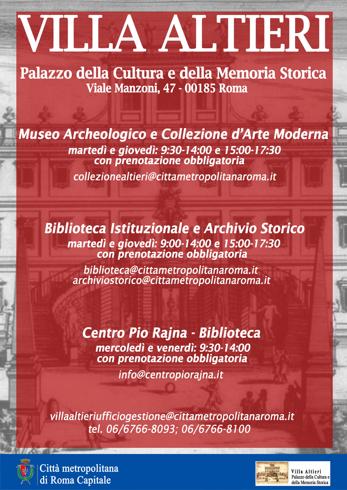 Nonostante il perdurare delle suddette difficoltà, rinnoviamo l’impegno per offrire un servizio sempre più possibile performante, e cogliamo altresì l’occasione per ringraziare gli utenti, le associazioni culturali, gli studiosi e gli studenti che vengono in visita a Villa Altieri per i positivi riscontri e gli attestati di stima ricevuti.