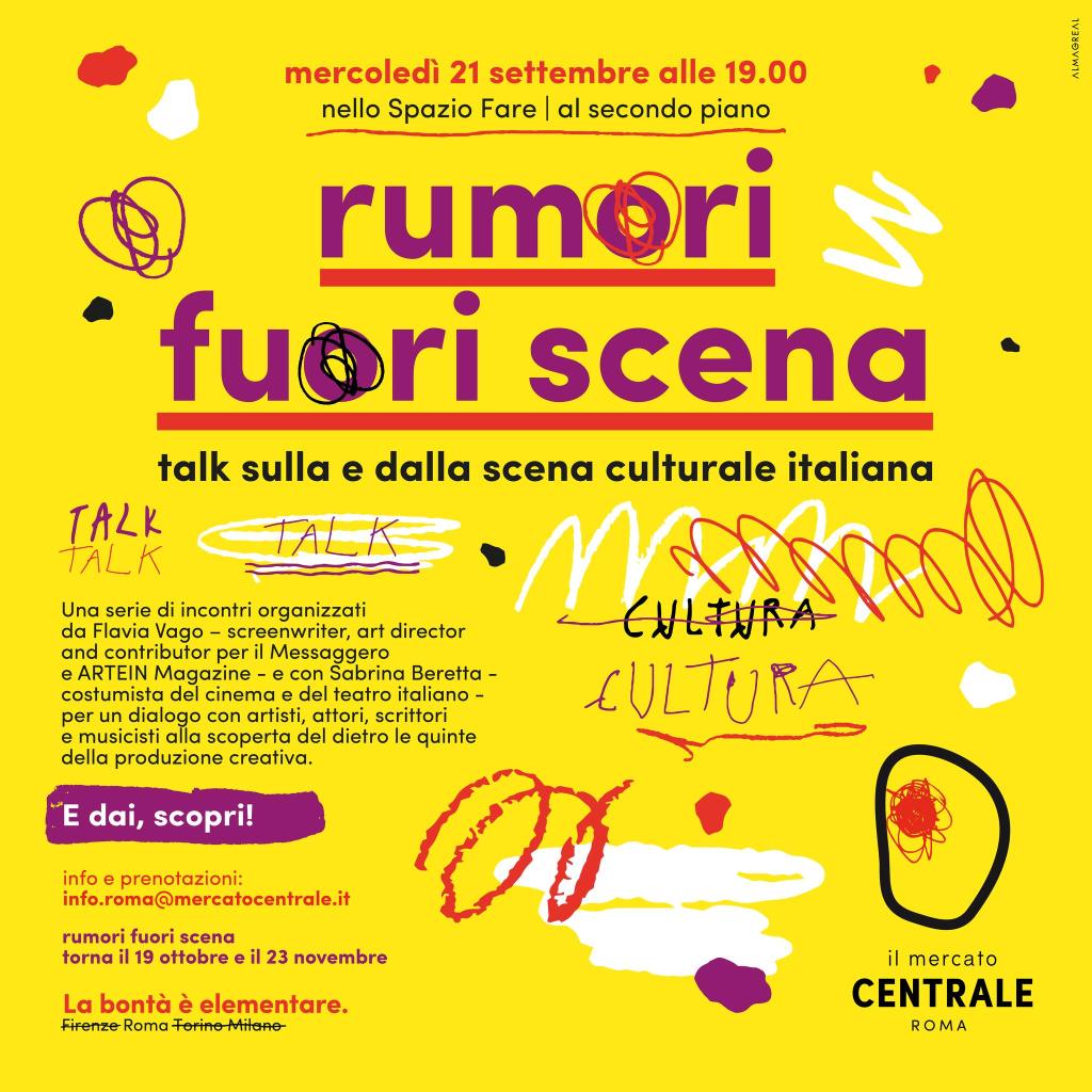 Nello Spazio Fare, con Flavia Vago Rumori fuori scena. Un talk con personaggi di spicco della scena culturale italiana che racconteranno il dietro le quinte della loro produzione creativa.