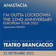 L’icona pop Anastacia , con il suo “I’m Outta Lockdown – The 22nd Anniversary” European Tour , farà tappa a Roma, al Teatro Brancaccio, il 22 settembre 2022, concerto organizzato da Ventidieci. Con mega hits multi-platino come “I’m Outta Love” e “Left Outside Alone” Anastacia è una delle voci più riconoscibili del nostro tempo. Questo tour di Anastacia è il suo primo da quello a supporto dell’album “Evolution” del 2018. A Ottobre 2021 Anastacia ha partecipato e vinto a “The Masked Singer Australia”. Ad oggi Anastacia ha venduto più di 30 milioni di dischi in tutto il mondo.