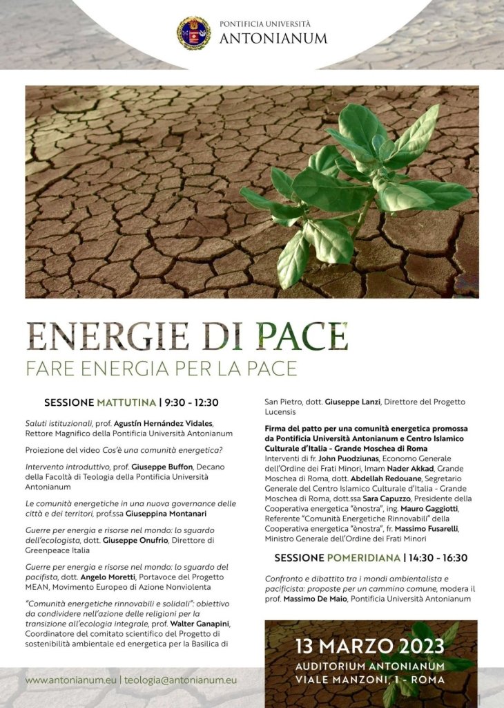 13/3/23 Convegno “Energie di pace: fare energia per la pace” presso l’Auditorium Antonianum