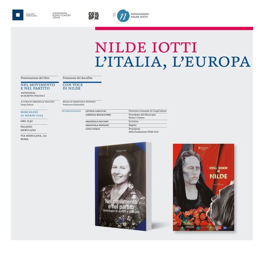 Palazzo Merulana e Coopculture ospitano l’evento “NILDE IOTTI. L’ITALIA, L’EUROPA”, durante il quale sarà presentato il libro “Nilde Iotti. Nel Movimento e nel partito. Antologia di scritti politici” a cura di Graziella Falconi (Harpo Editore) e proiettato il docufilm “Con voce di Nilde”, della regista Emanuela Piovano.