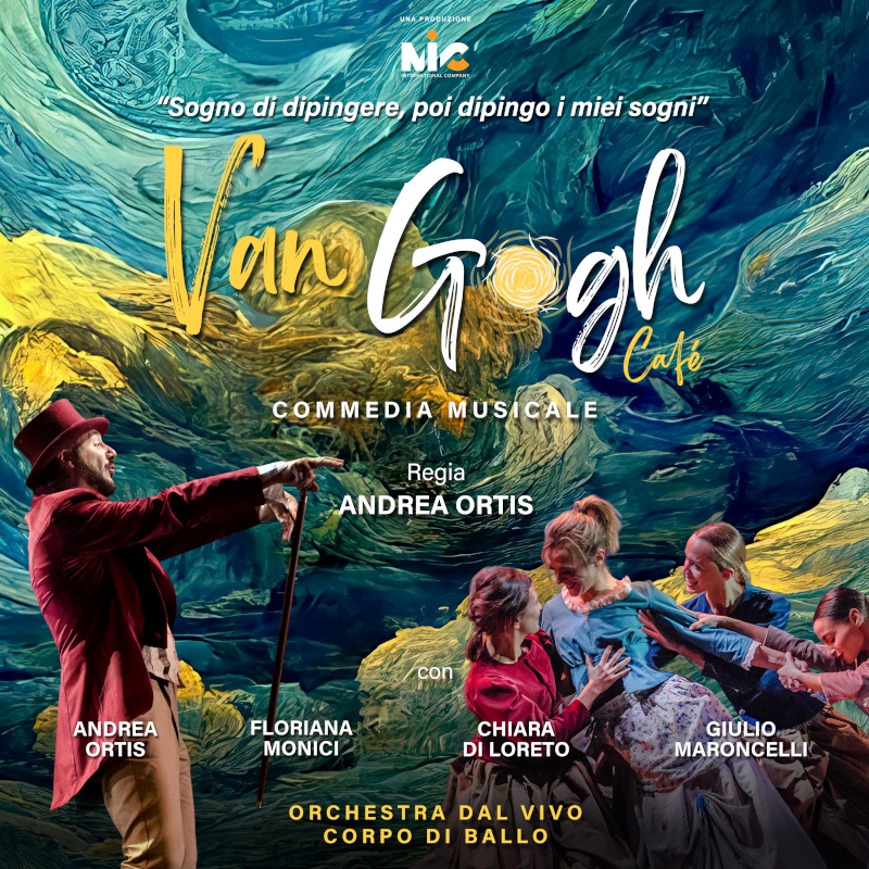 Scritta e diretta da Andrea Ortis, “Van Gogh café” è una commedia musicale che trae ispirazione dalle opere e dalla straordinaria vita del celebre pittore olandese 𝐕𝐢𝐧𝐜𝐞𝐧𝐭 𝐕𝐚𝐧 𝐆𝐨𝐠𝐡. In occasione della celebrazione dell’𝐚𝐧𝐧𝐢𝐯𝐞𝐫𝐬𝐚𝐫𝐢𝐨 𝐝𝐞𝐢 𝟏𝟕𝟎 𝐚𝐧𝐧𝐢 𝐝𝐚𝐥𝐥𝐚 𝐧𝐚𝐬𝐜𝐢𝐭𝐚 𝐝𝐞𝐥 𝐠𝐞𝐧𝐢𝐚𝐥𝐞 𝐚𝐫𝐭𝐢𝐬𝐭𝐚, la MIC – International Company porta in scena una pièce teatrale ambientata in un café Chantant Parigino di metà ‘800, nel quale la musica di un’orchestra dal vivo, il canto di un cast d’eccezione, la danza del corpo di ballo prendono vita e colore grazie anche ad emozionanti proiezioni 3D che rendono le opere di Vincent vive e meravigliosamente coinvolgenti.