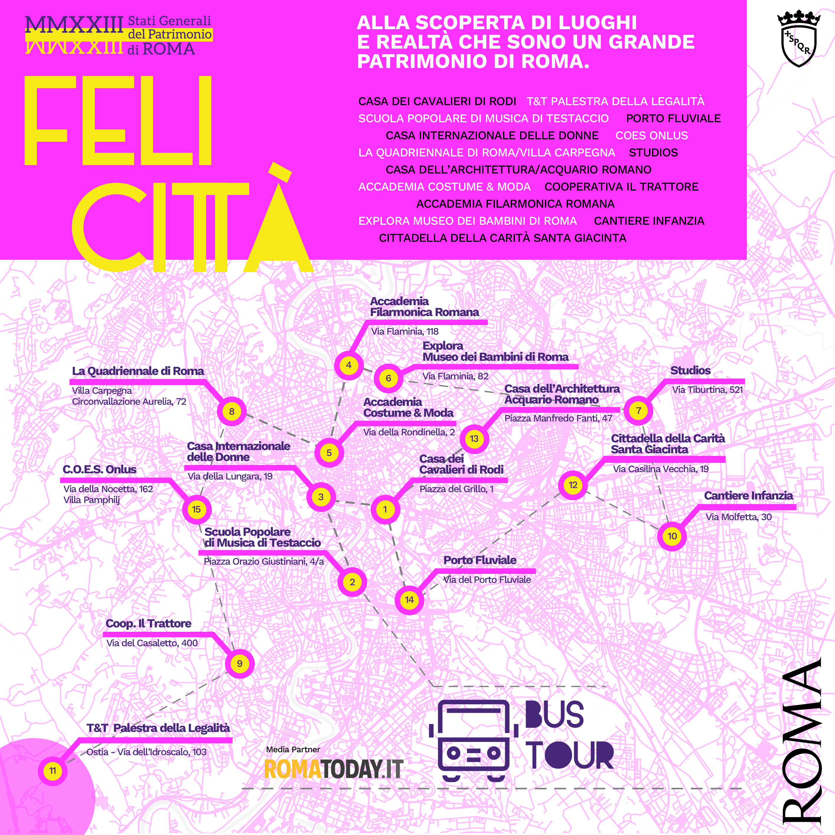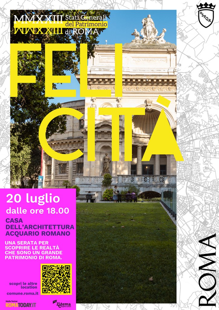 S’intitola Felicittà e sarà una festa diffusa aperta a tutti i cittadini e dedicata alle realtà che abitano il Patrimonio di Roma Capitale. Si tratta di Associazioni, Fondazioni, Accademie, Cooperative, etc.. che non solo rendono vivi questi spazi ma restituiscono alla città servizi, idee, cultura, progetti, solidarietà.