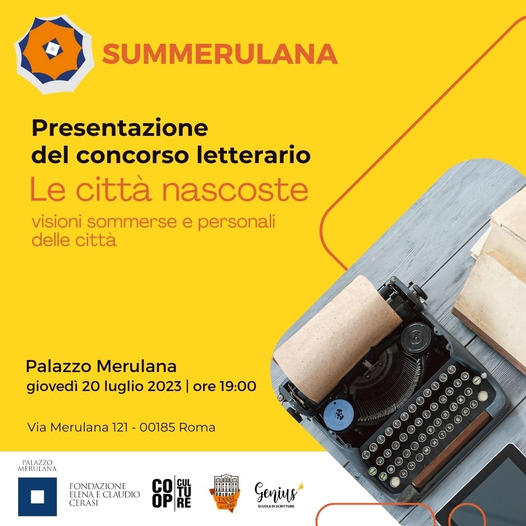 Palazzo Merulana, sede della Fondazione Elena e Claudio Cerasi e gestito e valorizzato da CoopCulture, ha il piacere di lanciare il terzo appuntamento di Summer Merulana 2023: “Le città nascoste. Visioni sommerse e personali delle città”, presentazione del concorso letterario ispirato a “Le città invisibili” di Italo Calvino, a cura di Genius – Scuola di Scrittura Creativa, in collaborazione con Fassi – Palazzo del Freddo; a seguire degustazione del Sanpietrino Fassi, omaggio a uno dei simboli iconici della nostra città.
