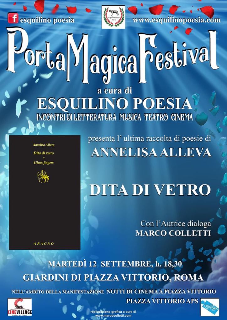 Martedì 12 settembre, alle ore 18:30, ANNELISA ALLEVA presenterà la sua ultima raccolta poetica, DITA DI VETRO – pubblicata in questi giorni da Aragno Editore nella collana Parallela, diretta da Irene Santori – che offre, a fianco del testo in italiano, la traduzione in questo caso in inglese.