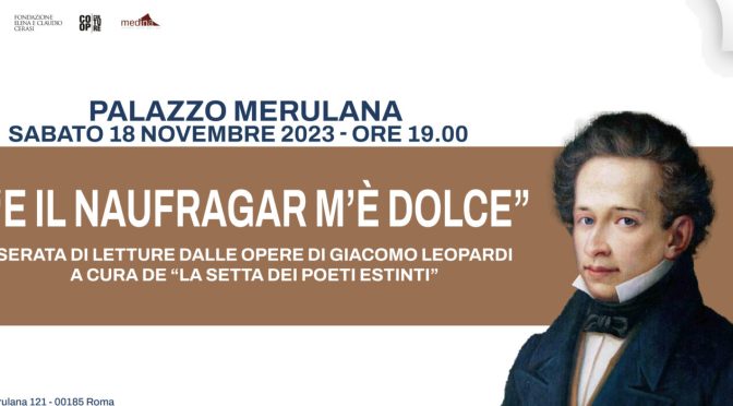 Palazzo Merulana ospita una nuova Serata di Letture a cura de La Setta dei Poeti estinti dedicata a Giacomo Leopardi!