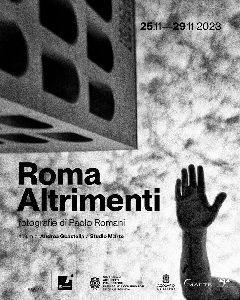 Il 25 novembre alla Casa dell’Architettura, in contemporanea all’evento Musei in Musica, inaugura la mostra fotografica di Paolo Romani “Roma Altrimenti” a cura di Andrea Guastella e Studio M’arte, organizzata dall’Associazione Culturale Aurea Phoenix. Sarà possibile visitarla dal 25 al 29 novembre 2023 dal lunedi al venerdi dalle 9 alle 19 presso il complesso monumentale dell’Acquario Romano al piano -1 Art gallery.