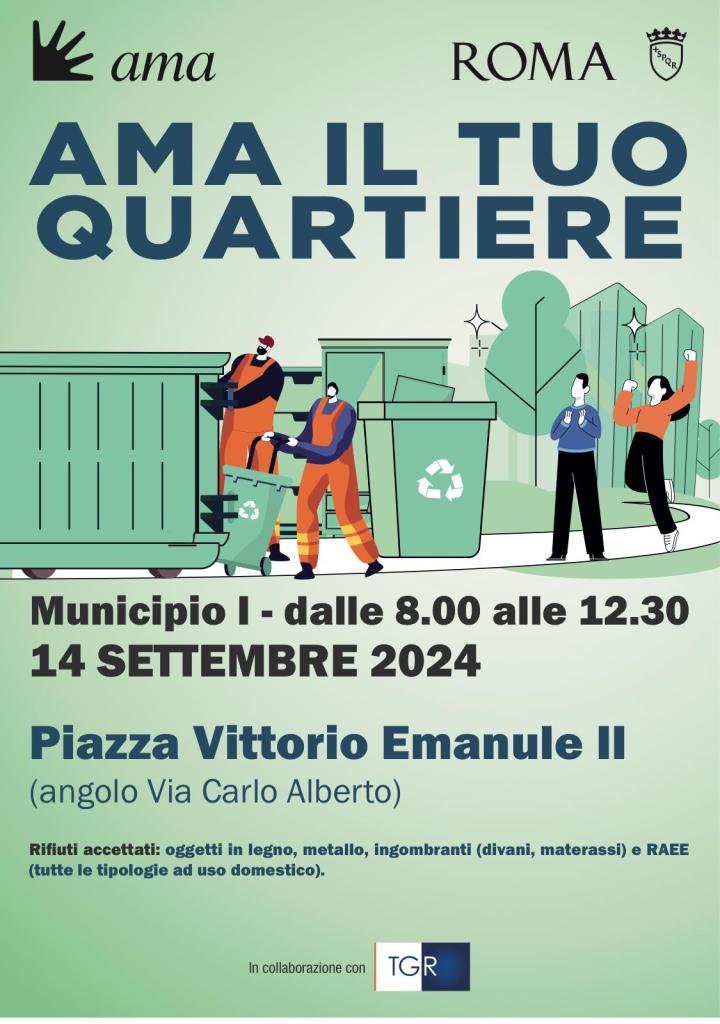 Sabato 14 ettembre 2024 dalle 8,00 alle 12,30 ritorna la raccolta dei rifiuti ingombranti nel I Municipio a Piazza Vittorio