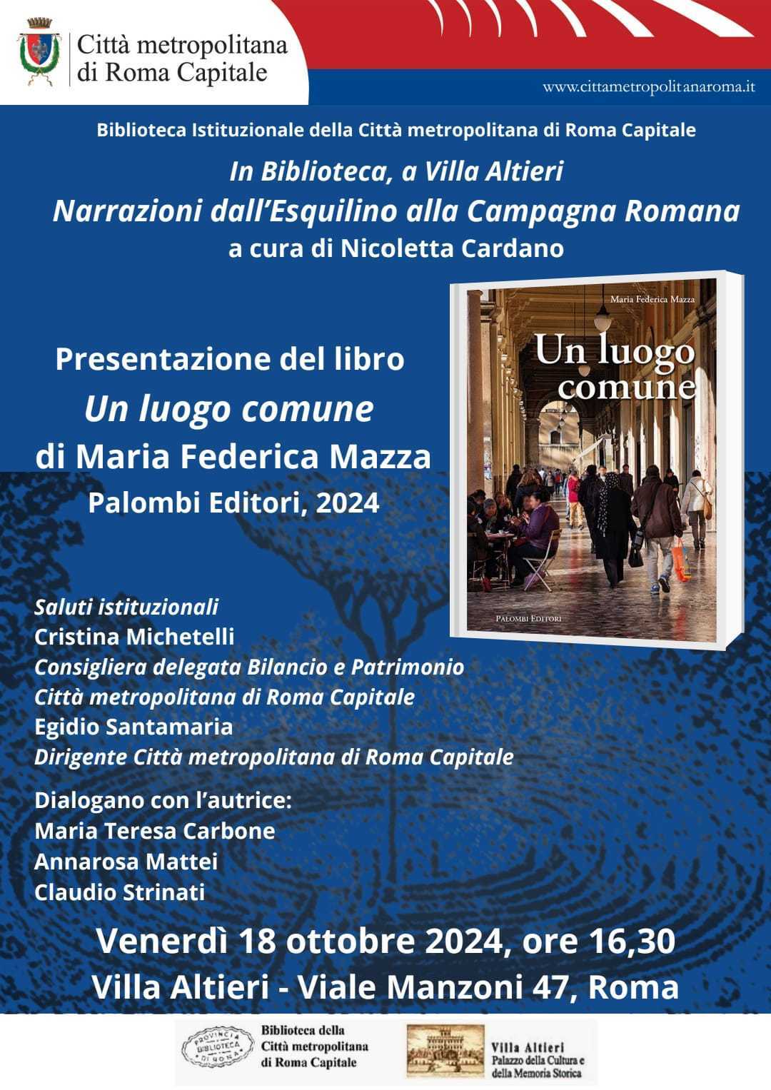 18/10/24 Presentazione del libro “Un luogo comune” di Maria Federica Mazza presso la biblioteca di Villa Altieri