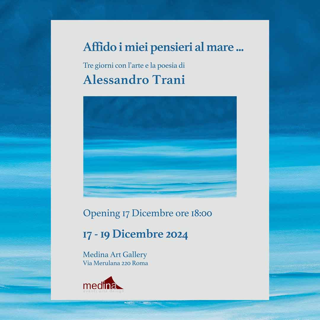 …Trani ci restituisce il mare come simbolo universale di rinascita, introspezione e sogno. Le sue opere, sospese tra calma e movimento, diventano un’esperienza visiva unica, capace di catturare lo sguardo e l’anima dello spettatore. Ogni tela si trasforma così in un luogo di incontro tra natura ed emozione, un invito a rallentare e a lasciarsi trasportare dalla profondità e dalla poesia che il mare porta con sé.