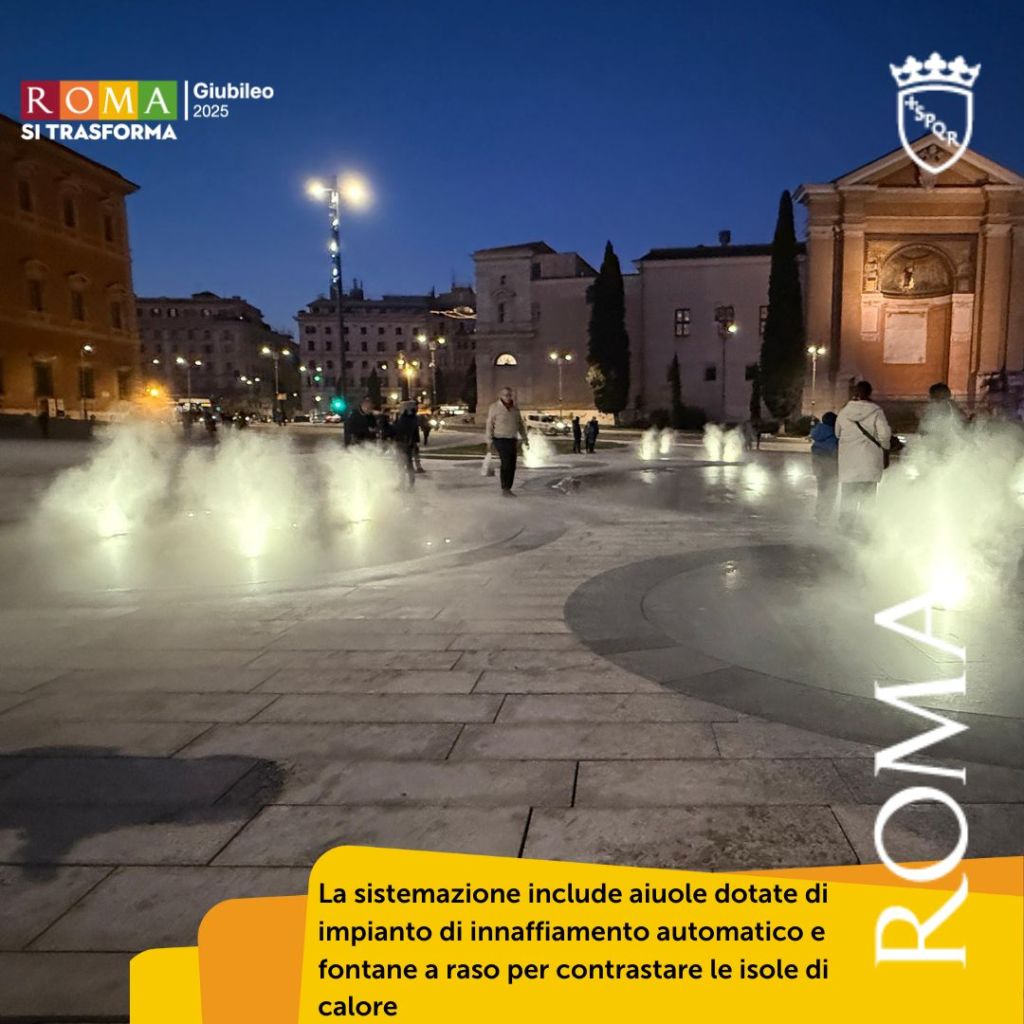 “Ora abbiamo una piazza più adeguata a una basilica importante come San Giovanni in Laterano, più verde, con l’acqua, i prati. Un bellissimo intervento che chiuderemo in anticipo sul cronoprogramma nella sua configurazione finale: era previsto per marzo ma chiuderemo a febbraio”. Le parole del sindaco Gualtieri.
