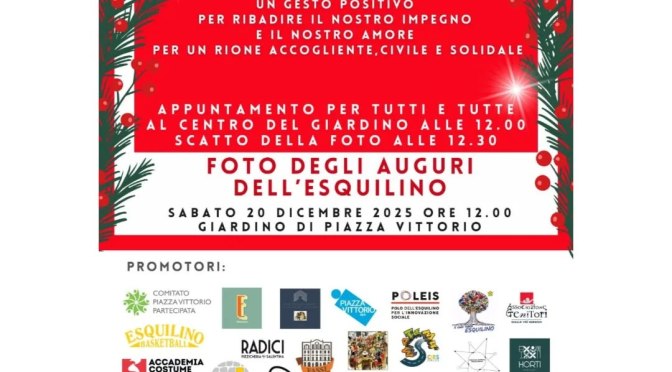 Il 20 dicembre 2025, alle ore 12.00, appuntamento per la grande foto del rione, al centro del giardino di Piazza Vittorio.